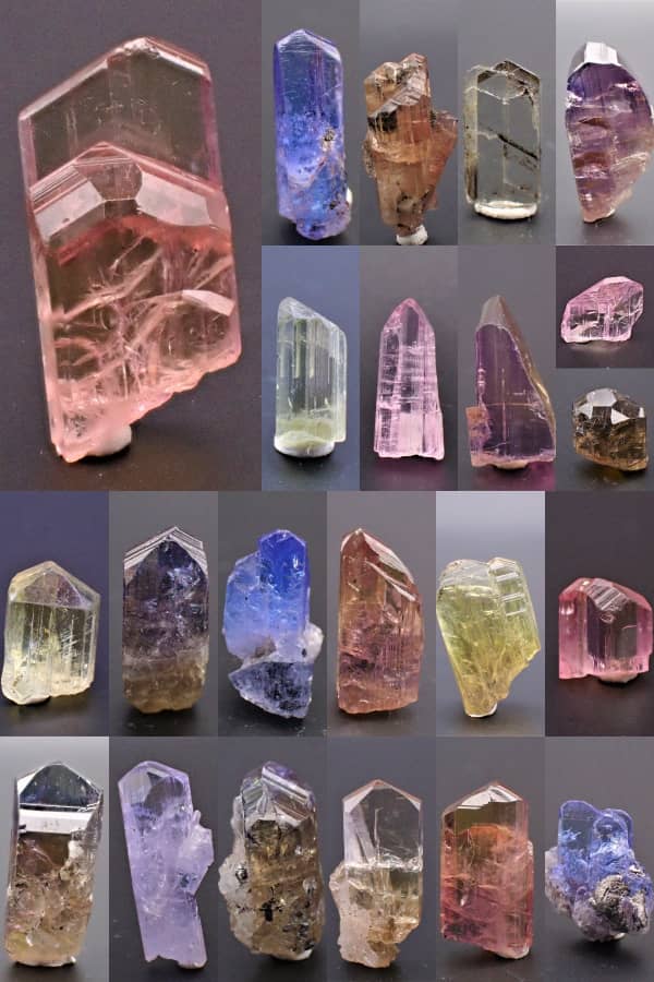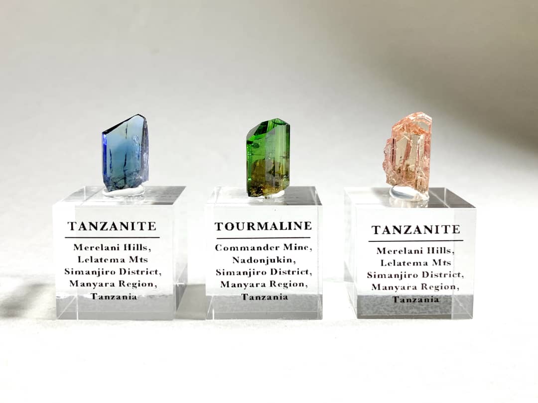 Tanzanite, Tsavorite, Grossular, Apatite, Mint garnet, Chrome Tourmaline, Diopside, Chrome tremolite, Prehnite, Pyrite,Alabandite,Sphalerite,Wurtzite,Chalcopyrite, Leuco garnets.